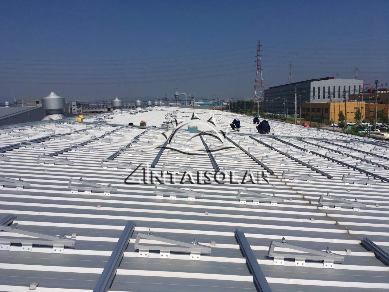 仁川港項(xiàng)目的屋頂類型為梯形彩鋼瓦,包含東西方向傾斜屋頂和南北方向傾斜屋頂,針對不同角度的屋頂,為了實(shí)現(xiàn)發(fā)電效率最大化,安泰工程師提供四種安裝解決方案,其中包括3種不同角度的三腳架;梯形夾具 + 三腳架 的支架方案在設(shè)計(jì)上極大地簡化了安裝步驟,從而大幅提升安裝效率,并且很大程度上為客戶減少了運(yùn)輸和倉儲成本。