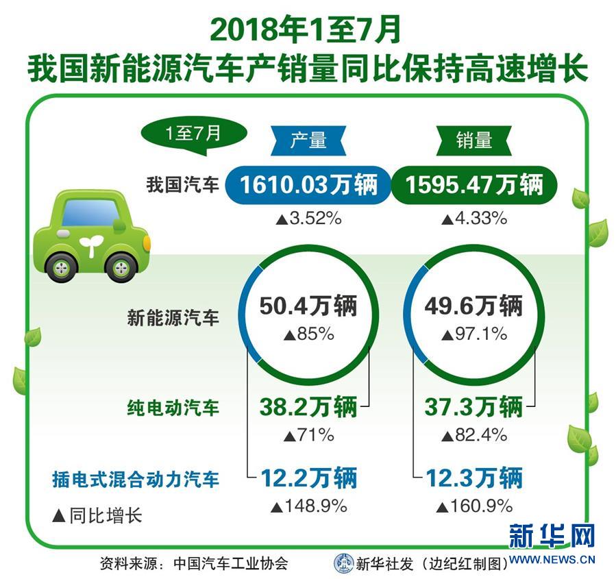 記者10日從中國汽車工業(yè)協(xié)會獲悉,1至7月我國汽車產銷量繼續(xù)保持小幅增長,其中,新能源汽車產銷分別完成50.4萬輛和49.6萬輛,比上年同期分別增長85%和97.1%,新能源汽車產銷量同比呈現(xiàn)高速增長態(tài)勢。